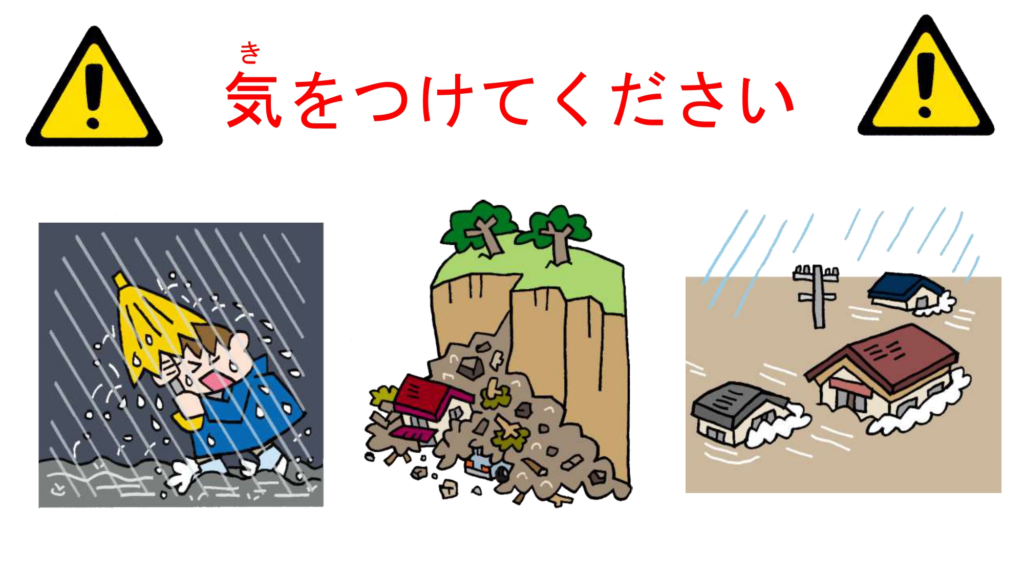 近日将有降雨及强风。请各位提高警惕,注意大雨及泥石流灾害。