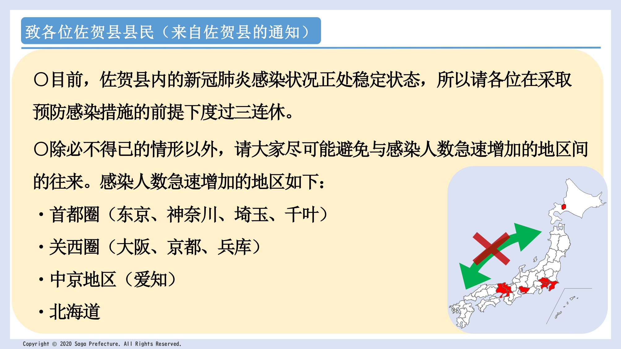 致各位佐贺县县民(来自佐贺县的通知)新冠肺炎